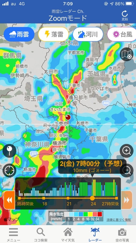 • ゲリラ豪雨を59分前に予測、プッシュで知らせてくれるサービス