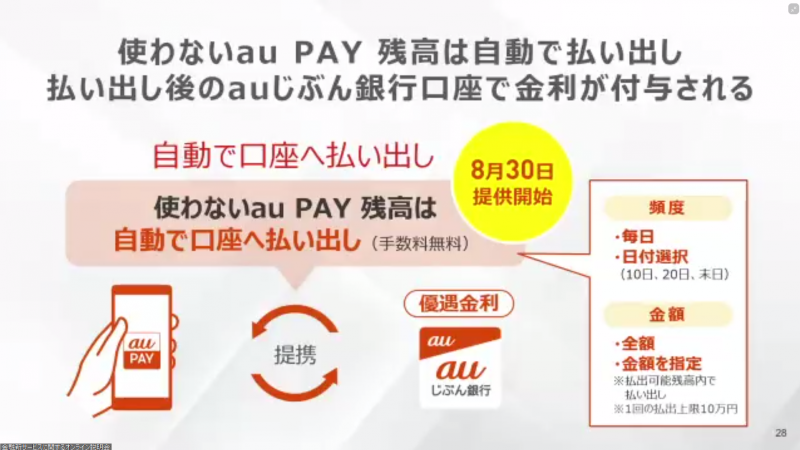 「au PAY残高→auじぶん銀行」の自動払出を提供、30日から(2/5)