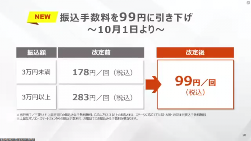 • auじぶん銀行が他行振込手数料引き下げ、スマホからは一律99円に