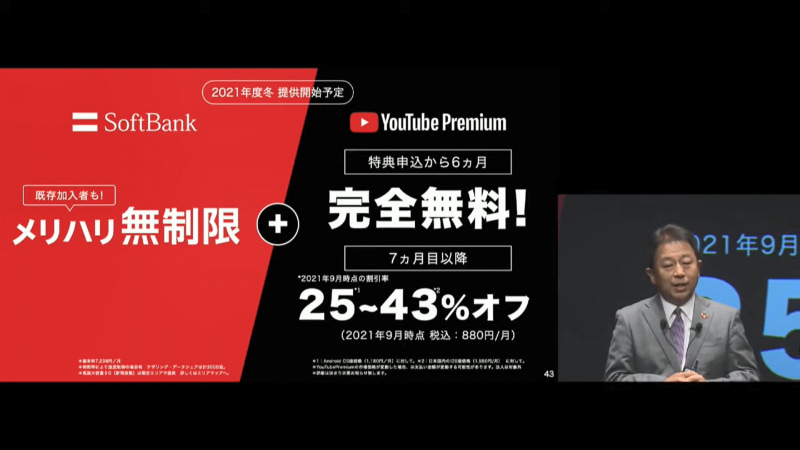 • ソフトバンクの料金プラン「メリハリ無制限」、YouTube Premiumが6カ月無料
