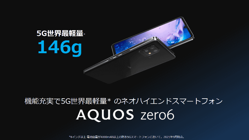 • ソフトバンクから軽さ146gの「AQUOS zero6」10月8日発売、7万4880円