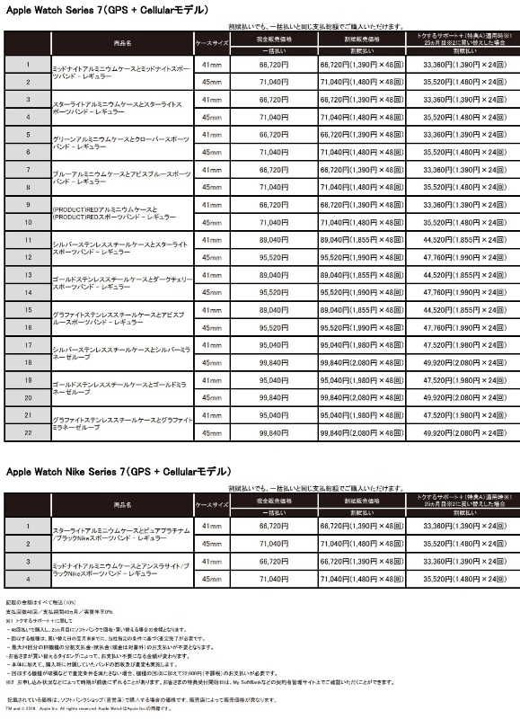 ソフトバンク、「Apple Watch Series 7」を10月15日に発売