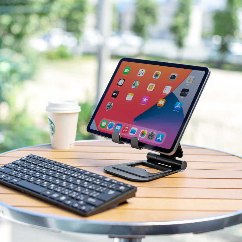 サンワサプライ、2つのヒンジで角度と高さが調整できるタブレットスタンド(2/7)