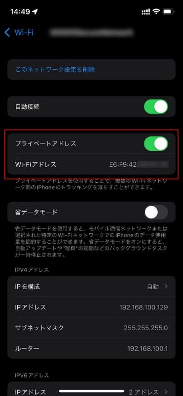 Wi-Fiのプライベートアドレスの設定に注意(3/5)