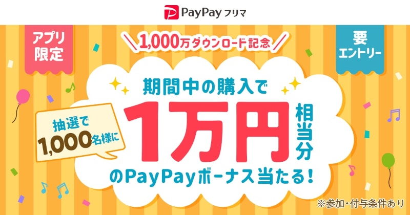 「PayPayフリマ」商品購入で1万円相当のPayPayボーナスが当たるキャンペーン、7日まで