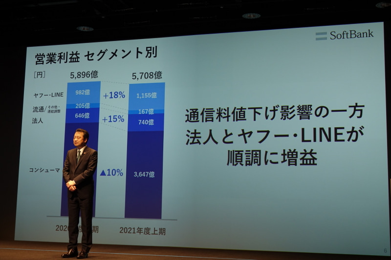 携帯料金値下げの影響は260億円、インフラ整備へ影響の可能性も――ソフトバンク、22年3月期Q2は増収減益(8/41)