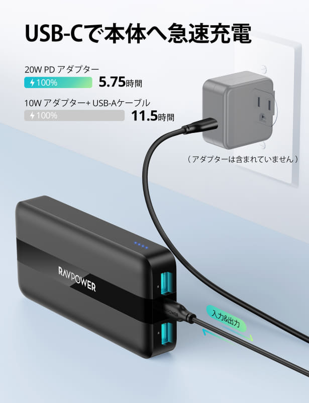 「RAVPower」から20W出力の大容量モバイルバッテリー、発売記念セールも(5/7)
