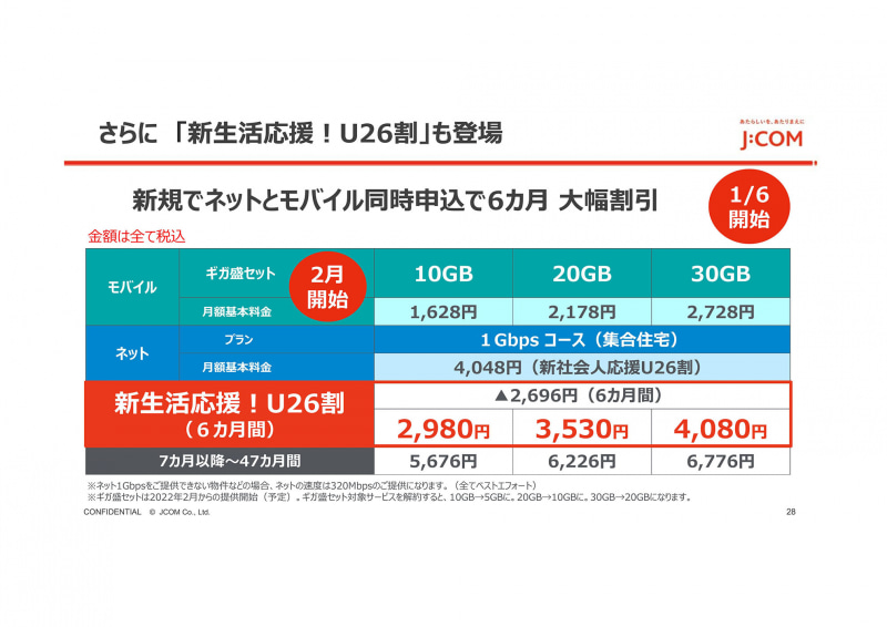 J:COM、1078円で5GB使える「ギガ盛りセット」などを発表――サポートとセットで差別化を図る