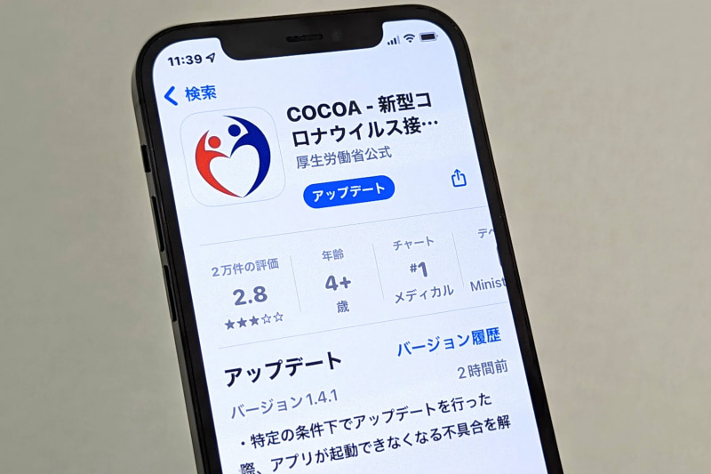 接触確認アプリ「COCOA」最新版に更新、「接触通知が受け取れない」事象を修正