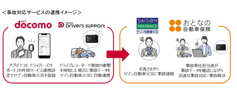 「ドコモ ドライバーズサポート」でセゾンの自動車保険と連携、迅速な事故対応をサポート