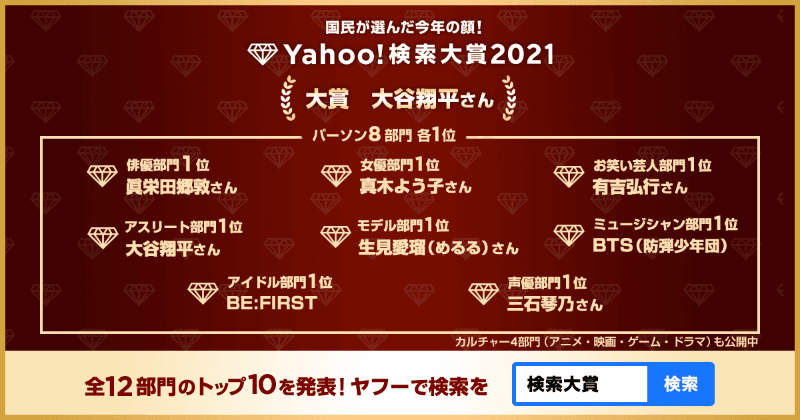 「Yahoo! 検索大賞2021」第一弾が発表、東京リベンジャーズやウマ娘がランクイン