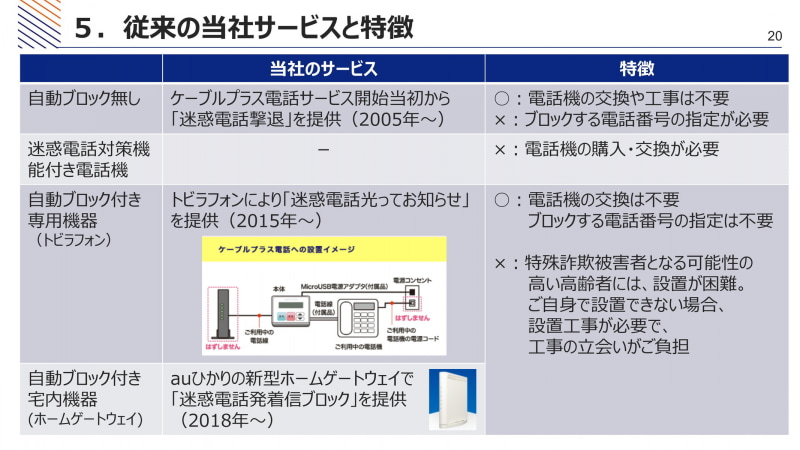 KDDI、ケーブルプラス電話向けに後付け機器・電話機交換不要の「迷惑電話自動ブロック」(6/15)