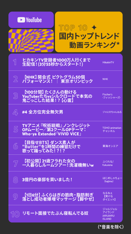 YouTube、「2022年日本のYouTube年間ランキング」を発表