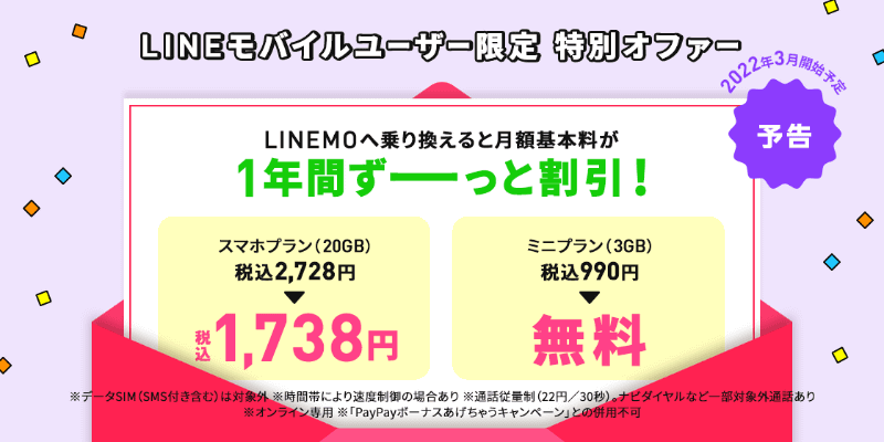LINEモバイル、4月から「ベーシックプラン」通信量を増量