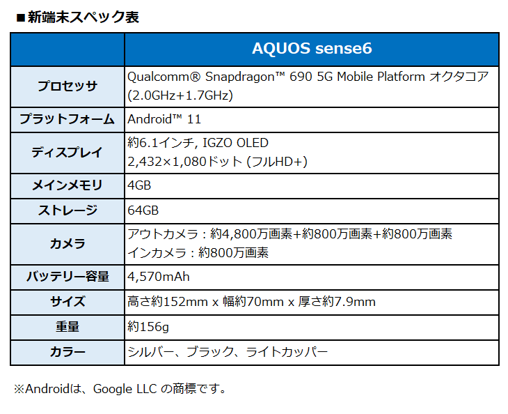 シャープ「AQUOS sense6」のSIMフリーモデル、26日から順次発売