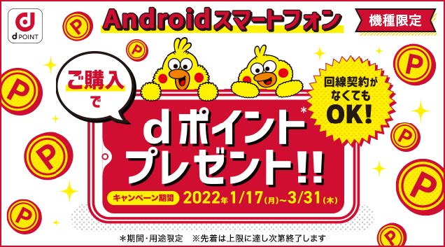 ドコモ、「Androidスマートフォンdポイントプレゼント」の期間を一部延長