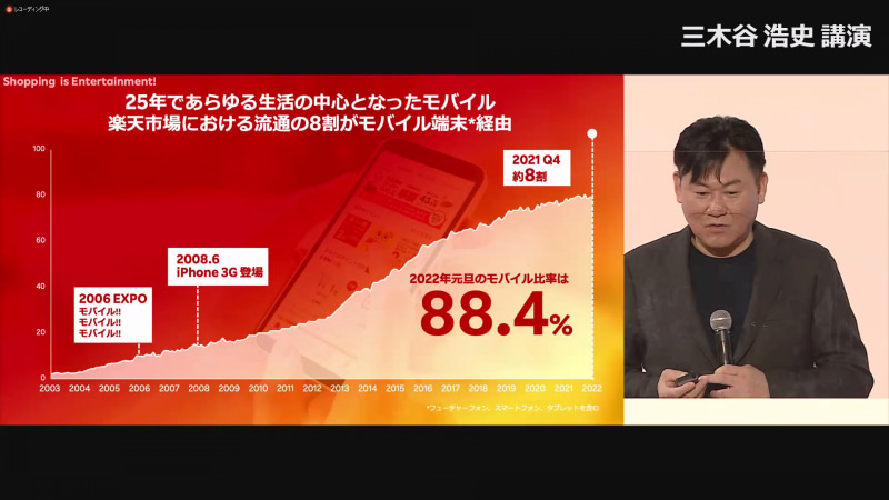 楽天G 三木谷氏「楽天モバイル加入者は1.7倍多く買う」――加盟店向け新春カンファレンス(9/12)
