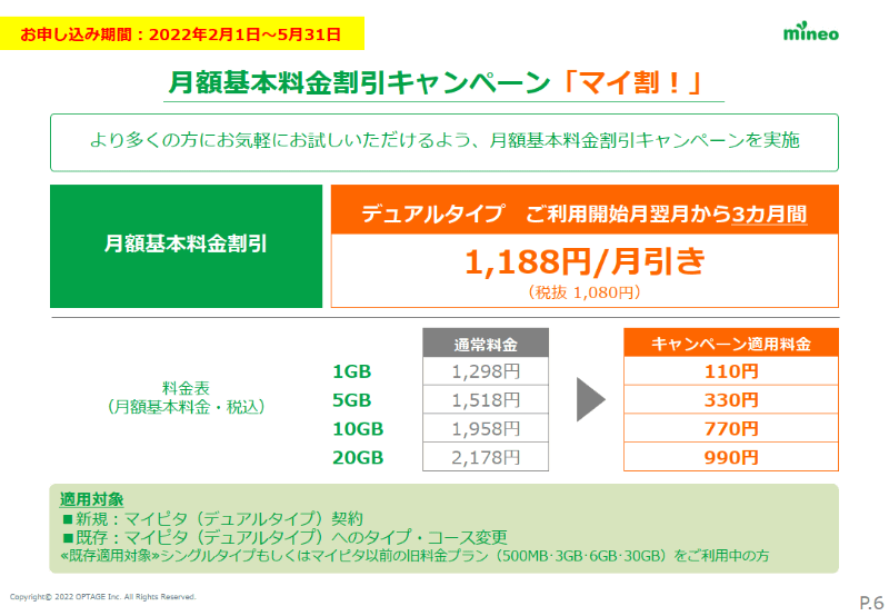 mineoが新プラン「マイピタ」、音声通話つき1GBで1180円から