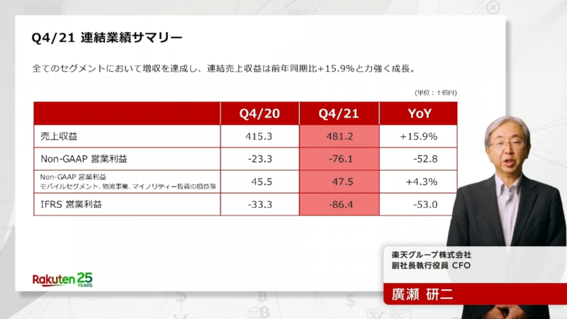 楽天グループ21年通期の売上は1.7兆円も赤字1947億円、三木谷氏「楽天モバイルの赤字は22年1Qがピーク」(2/26)