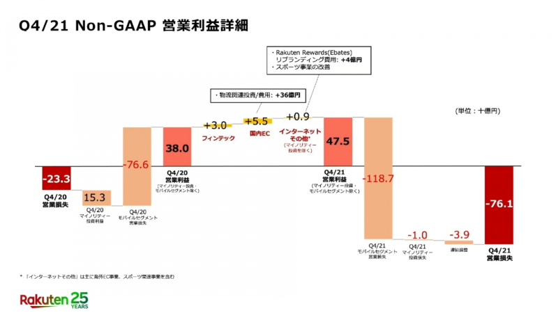 楽天グループ21年通期の売上は1.7兆円も赤字1947億円、三木谷氏「楽天モバイルの赤字は22年1Qがピーク」(3/26)