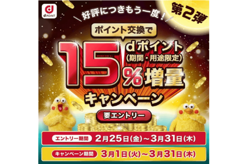 dポイント提携店でポイント交換すると15%増量のキャンペーン