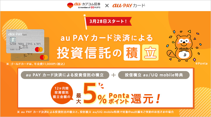 auカブコム証券、口座開設で1000ポイント&クレカ積立で最大5%還元