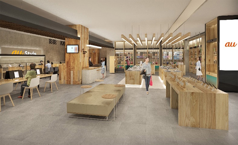 au、カフェ併設の新直営店を名古屋と広島にオープン