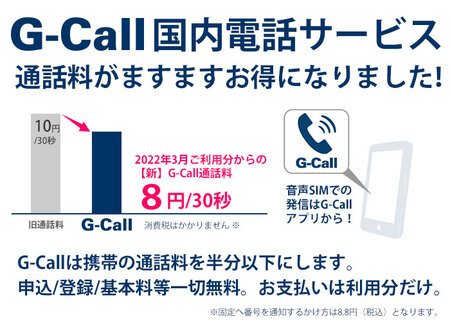 携帯電話の通話料を30秒8円にする「G-Call電話」紹介キャンペーンはじまる