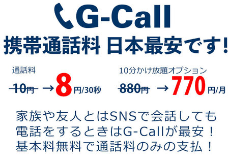 携帯電話の通話料を30秒8円にする「G-Call電話」紹介キャンペーンはじまる