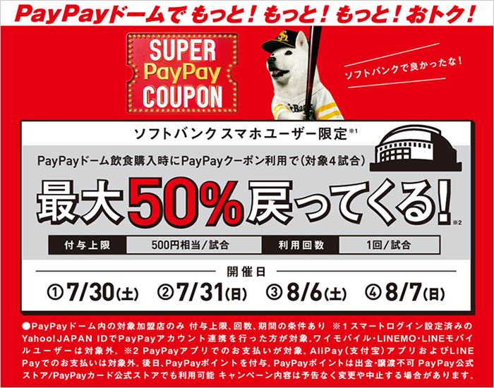 「PayPayドーム」で生ビールやフード半額、PayPayがお得なキャンペーン