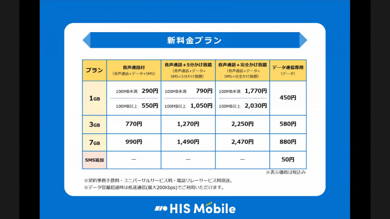 HIS Mobileの新料金プラン「格安ステップ」、音声SIMで1GB590円~