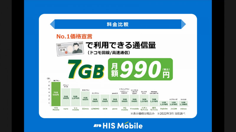 HIS Mobileが新料金プラン、7GB/月990円(3/7)