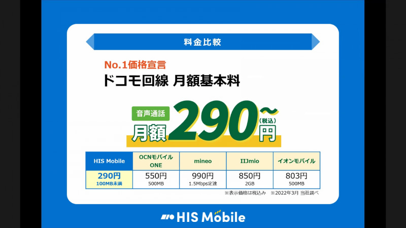 HIS Mobile、最安290円~の新プラン――低価格と実店舗展開で3Gユーザーからの乗り換え狙う
