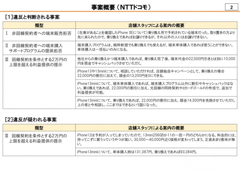 • 総務省WG「キャリアショップ覆面調査」での違反事例を紹介、「回線契約がないと売れない」「契約があると割引が上乗せできる」など