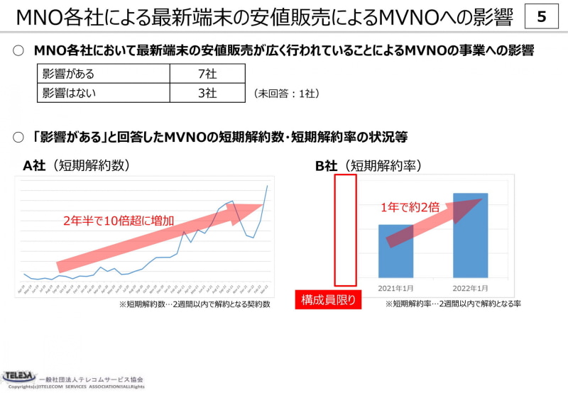 大手キャリアの端末割引がMVNOの短期解約要因に、総務省会合の報告(2/42)