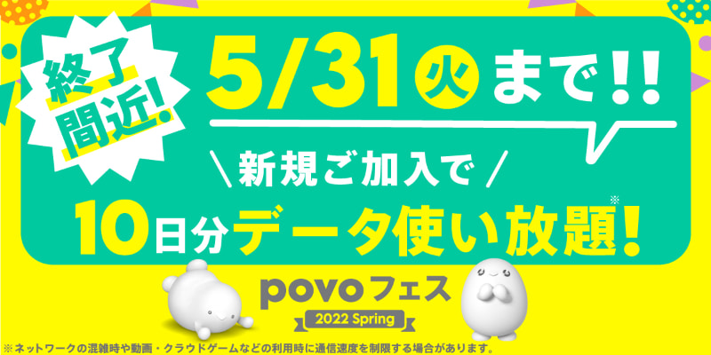 「povo フェス」開催、新規加入&データ購入で“最大30日使い放題”プレゼント