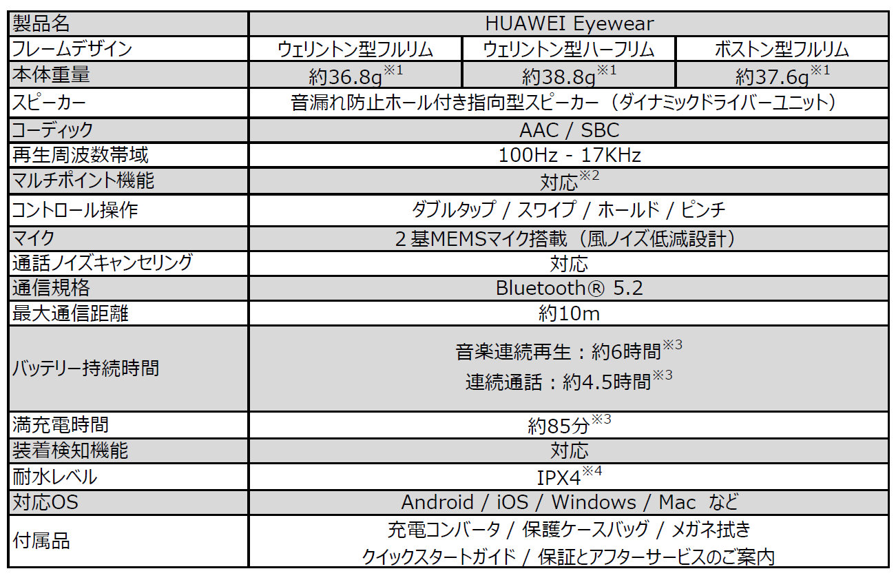 ファーウェイ、オーディオグラス「HUAWEI Eyewear」発売(4/6)
