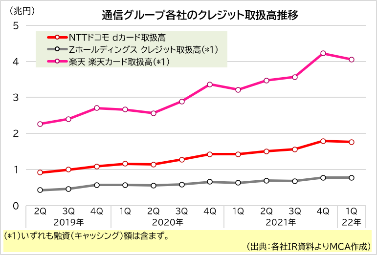 携帯各社の回線系ARPUは右肩下がり、一方で注力分野の金融・決済はいずれも軒並み成長を維持(2/4)