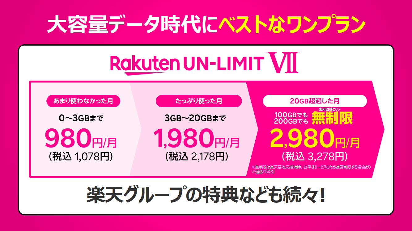 • 楽天モバイルが7月から新料金「Rakuten UN-LIMIT VII」、0円なくなり月額1078円~3278円、ポイント倍率はアップ