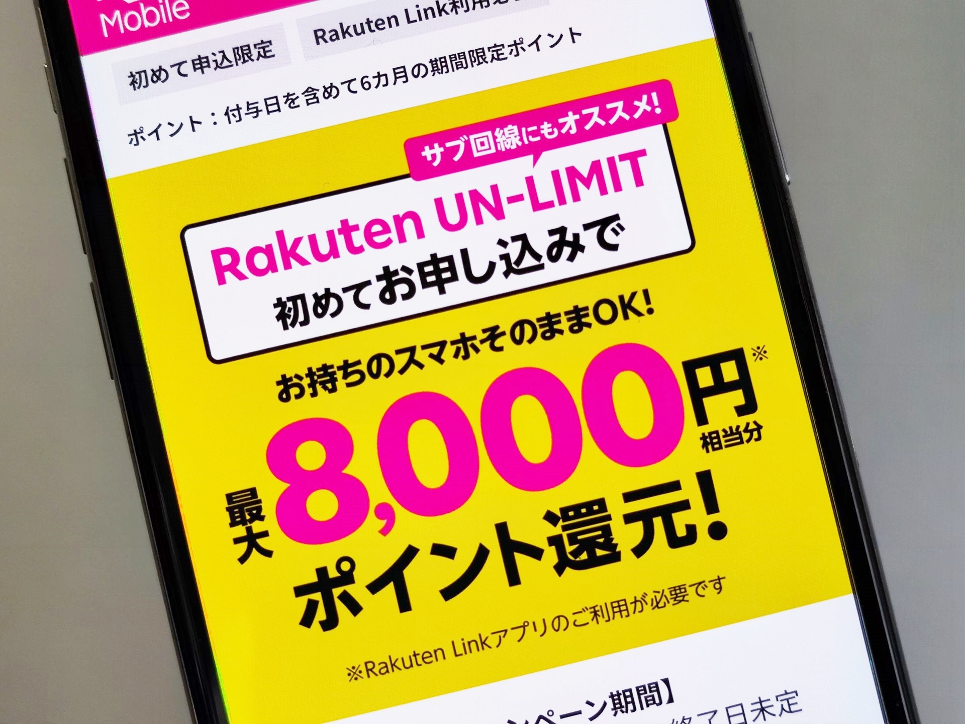 楽天モバイル「初めての契約」ならiPhone/Androidスマホ購入でポイント還元