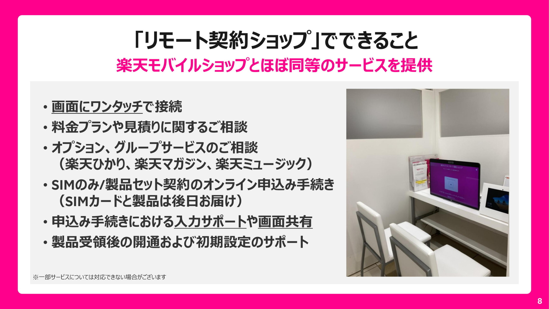 楽天モバイルが「リモート契約ショップ」を新展開、ショッピングモールなどから画面越しに契約や相談(3/14)