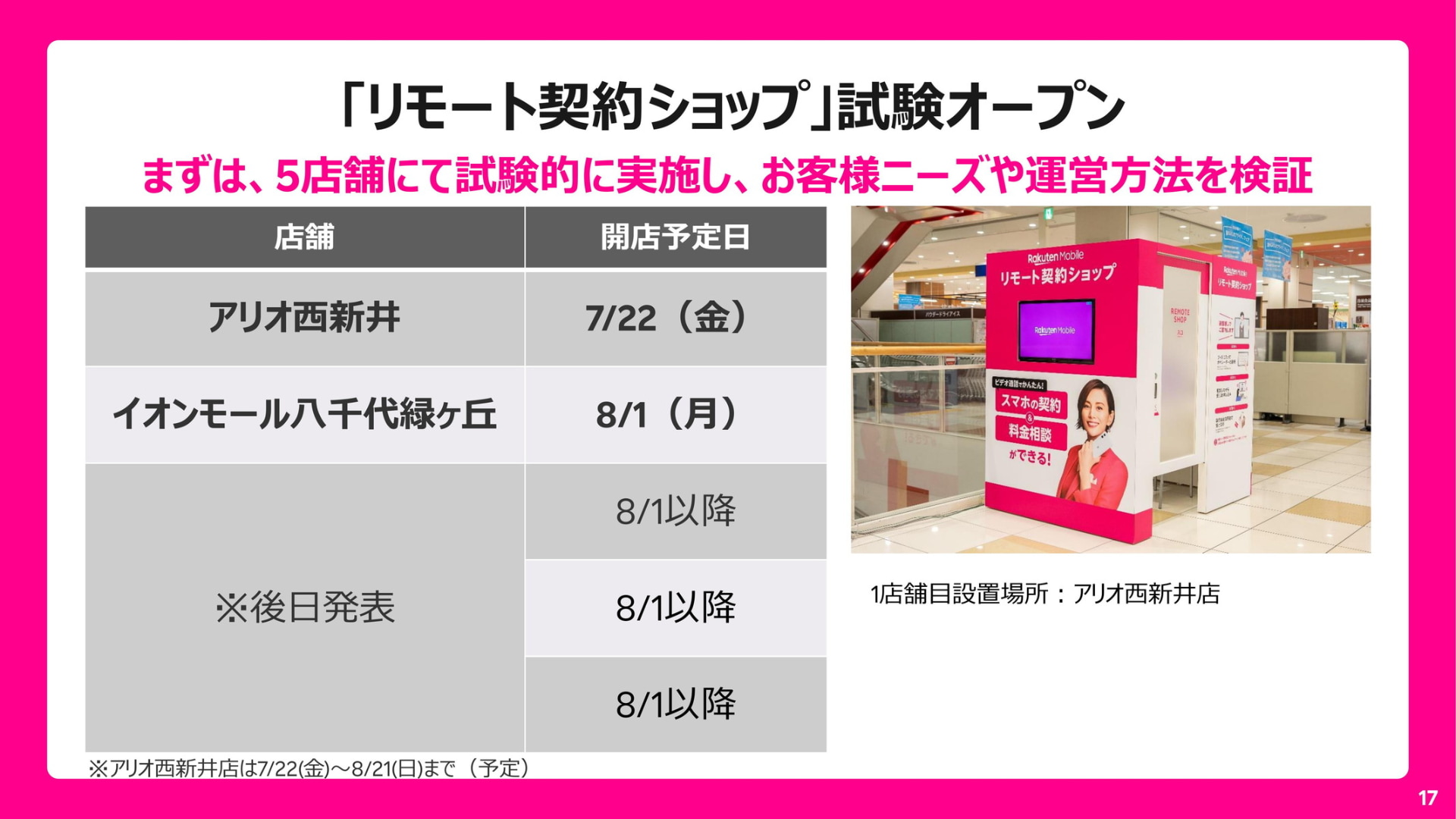 楽天モバイルが「リモート契約ショップ」を新展開、ショッピングモールなどから画面越しに契約や相談(8/14)