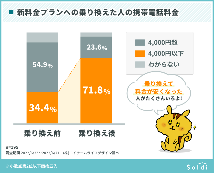「ahamo」「povo」「LINEMO」に乗り換えた人は6%、Soldi調査(6/7)