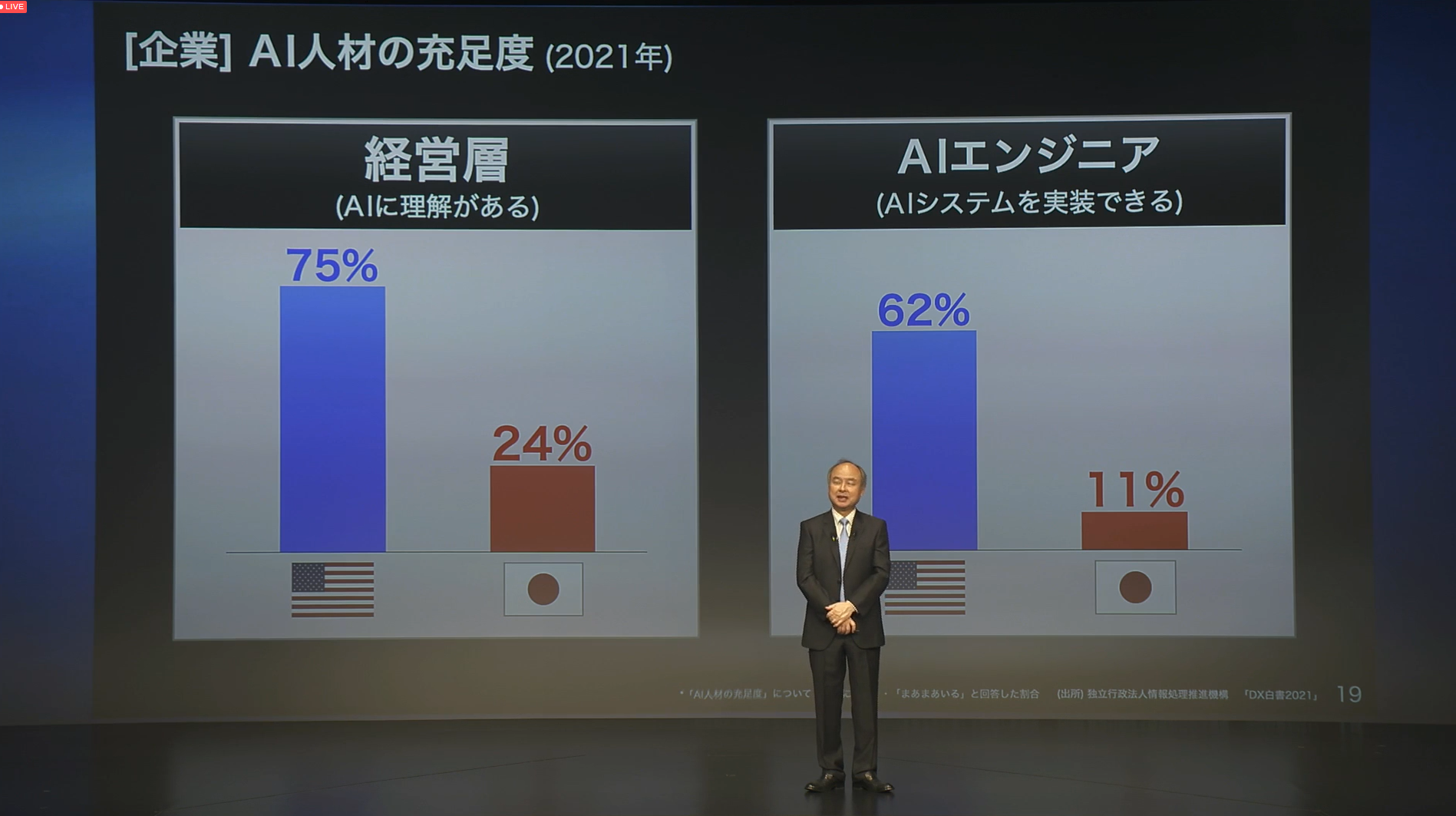 • SoftBank World 2019で孫氏が基調講演、「日本はAI後進国、今ならまだギリギリ間に合うかも」