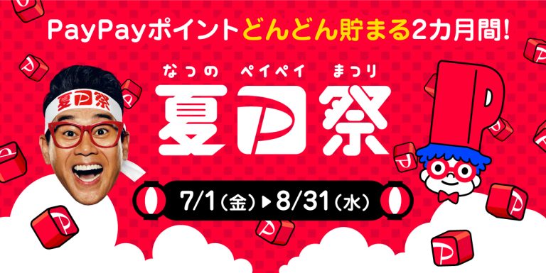 「夏のPayPay祭」は本日1日から、最大100%還元のペイペイジャンボなど