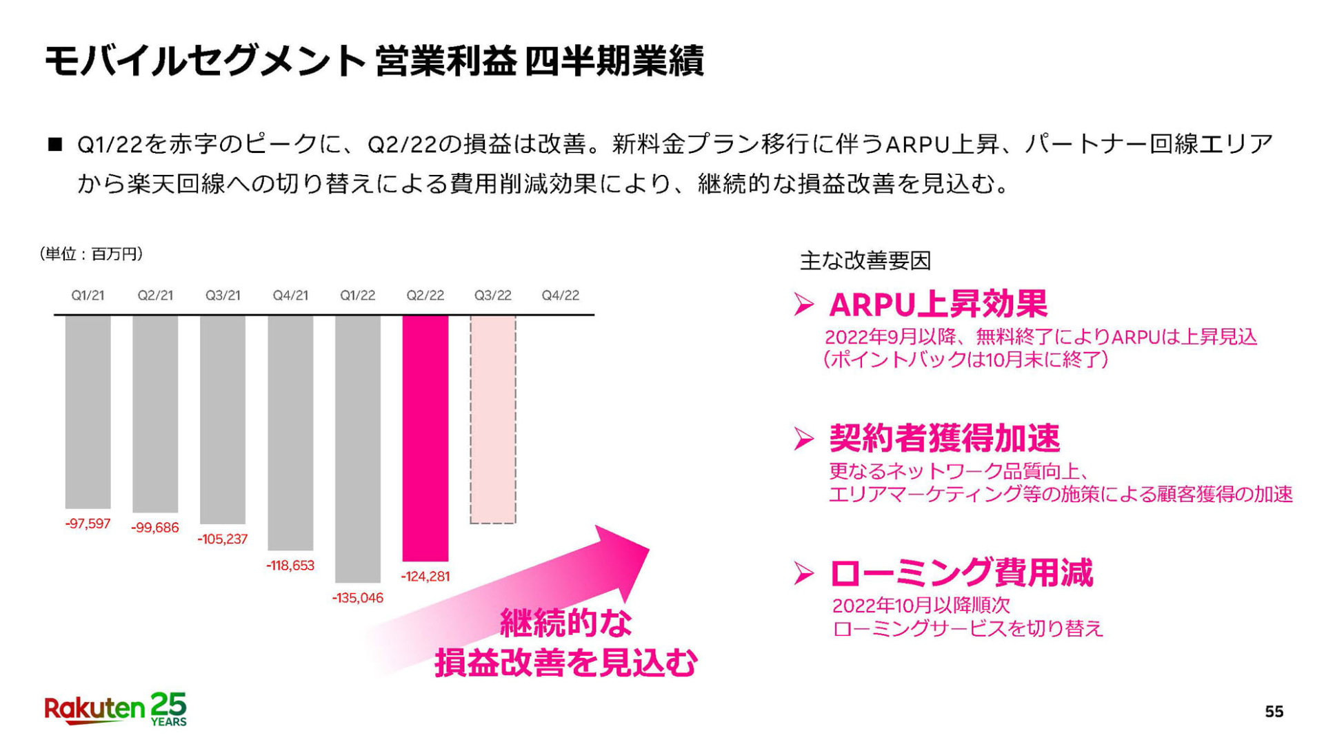 楽天グループ22年第2四半期決算、楽天モバイル0円廃止について三木谷氏「解約の8割は0円ユーザー」(51/60)