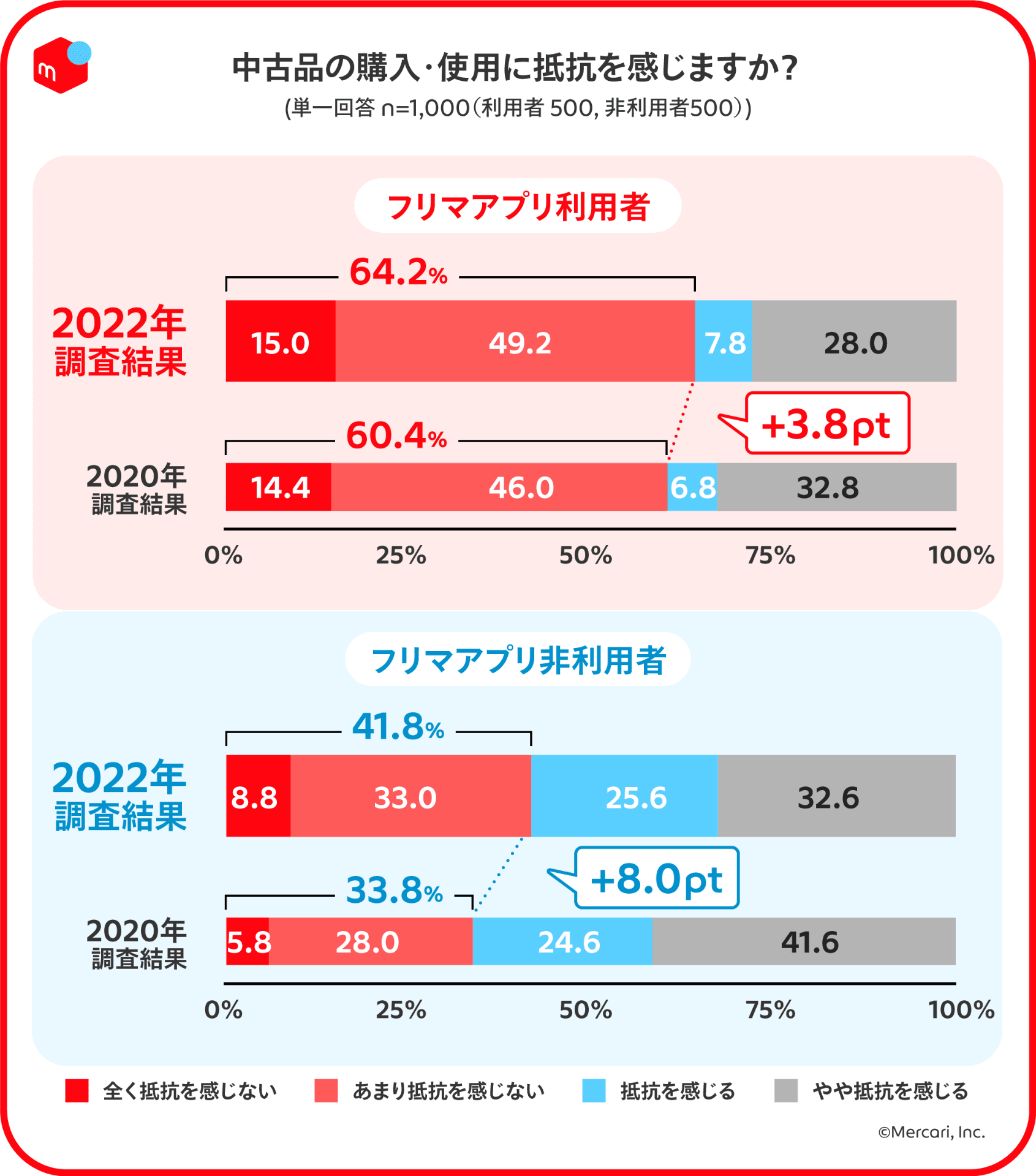 メルカリがフリマアプリ利用者と非利用者の消費行動に関する意識を調査――「中古品への抵抗がない」53.0%(5/13)