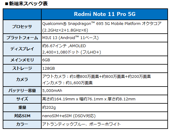 「Redmi Note 11 Pro 5G」、4万円台のFeliCa搭載の5G対応実力派モデル