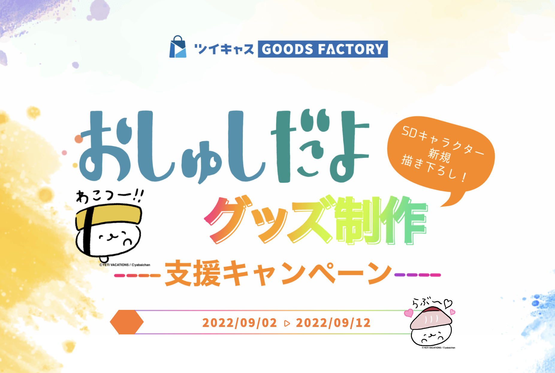 配信者のグッズ制作サービス「ツイキャス・グッズ・ファクトリー」オープン、「おしゅしだよ」コラボの記念キャンペーンも