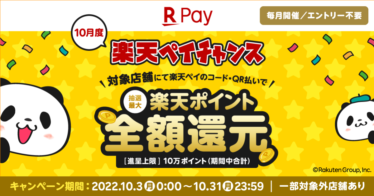 楽天ペイ、11月はローソンやサンドラッグなどで1等最大100%還元